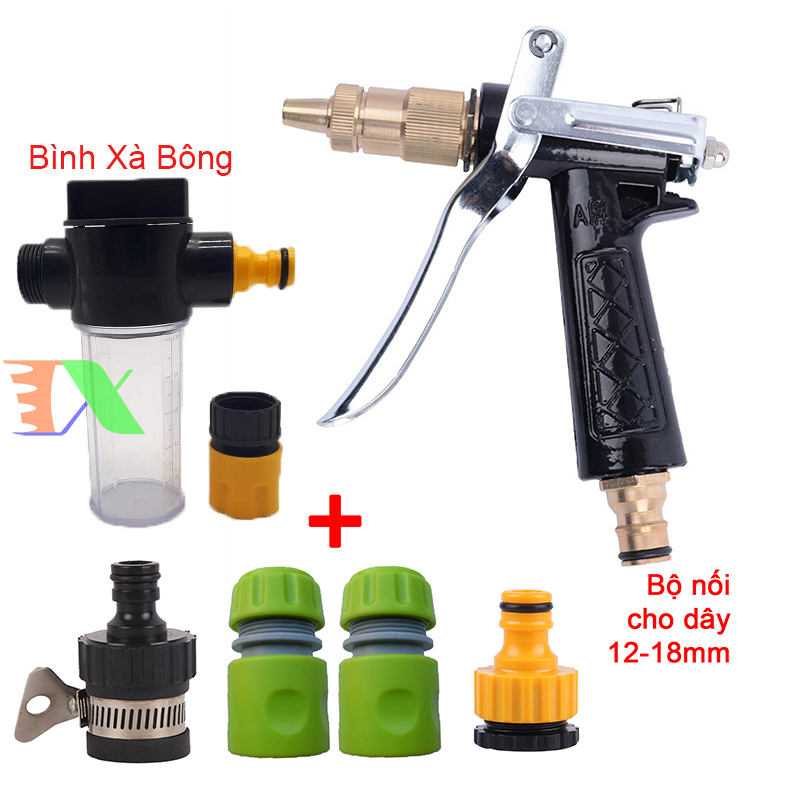 Bộ vòi phun nước tưới cây, Bộ vòi rửa xe 4 món của chúng tôi được lắp đặt với các loại máy phun nước áp lực cao, phục vụ cho việc tưới cây cỏ nhanh chóng, khoa học. Vơi khớp gắn linh hoạt phù hợp cho tất cả các loại ống nước tiêu chuẩn, giúp bạn dễ dàng lắp ráp và tháo ra vệ sinh khi cần.
