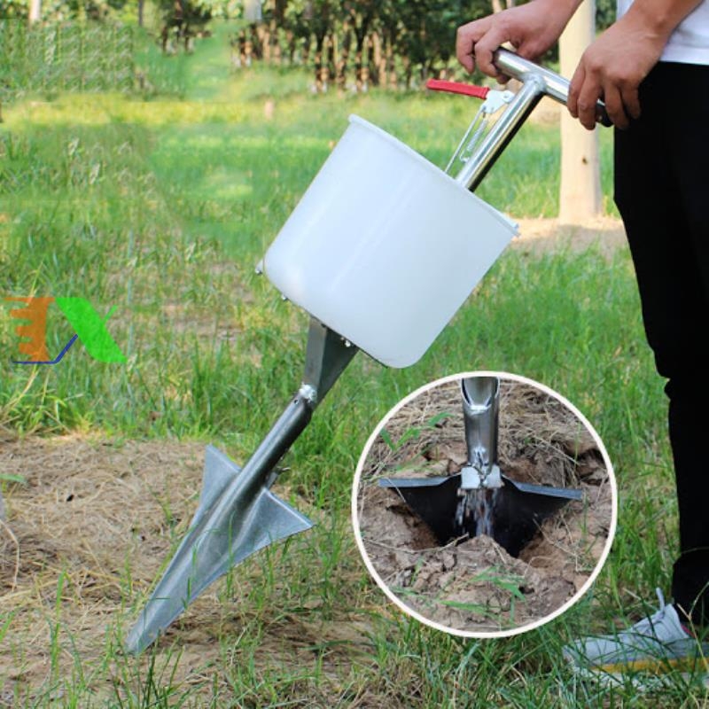 - Bón phân đều và chính xác: Chỉ cần thao tác đơn giản, phân sẽ được đưa từ thùng chứa xuống lưỡi xẻng theo lượng điều tiết cố định, giúp rải đều tại gốc hoặc rãnh theo ý muốn.